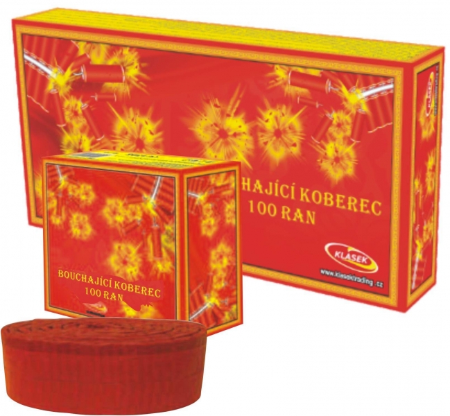 Búchajúci koberček 100 rán je najvyhľadávanejší hlavne počas vianočných sviatkov a osláv príchodu nového roka. Búchajúci koberček pozostáva z 100 extra silných petárd a je dlhý 32 cm. Na jedno odpálenie sa teda môžete tešiť až na 100 rán. Petardy sú najpoužívanejšia zábavná pyrotechnika.